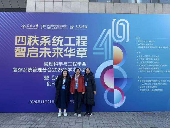 2025年11月21日至23日,由管理科学与工程学会、中国系统工程学会、建构复杂系统管理中国自主体系大学联盟主办,天津大学管理与经济学部及多家期刊编辑部承办的“管理科学与工程学会复杂系统管理分会2025年学术年会暨《系统工程学报》创刊40周年纪念会”在天津大学成功举办。本次年会以“四秩系统工程·智启未来华章”为主题,旨在深入总结系统工程学科的发展历程,推动复杂系统管理理论的发展,构建具有中国特色的系统科学和系统工程知识理论体系。管理学院电子商务教研室主任董晓娟、教师安素芳携研究生张紫涵参加了本次年会。