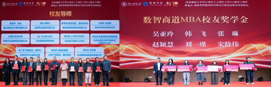 校友导师聘任仪式上管理学院院长白翠玲宣读了MBA校友导师聘任决定,白翠玲院长、周雪书记为11名校友导师颁发聘书,这些校友正式受聘为河北地质大学MBA校友导师。数智商道MBA校友奖学金颁发仪式上,18级MBA校友富中集團有限公司董事總經理智会杰为6名MBA学子颁发校友奖学金。校友导师的聘任和校友奖学金的颁发是校友反哺母校的新见证,MBA教育中心将以此次聘任会为契机,与校友凝心聚力携手共进,让校友资源成为MBA教育高质量发展的强大引擎,共同书写河北地质大学育人事业的新篇章。