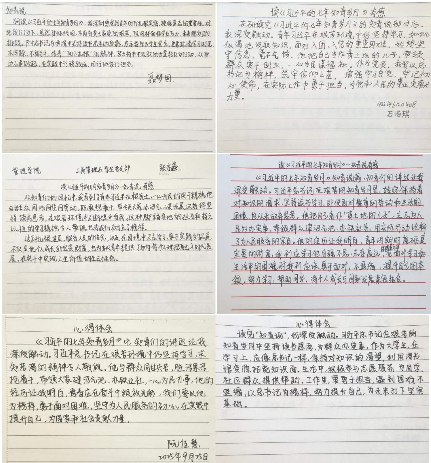 《习近平的七年知青岁月》知青说篇,知青们的讲述让我深受触动。习近平总书记在艰苦的知青岁月里,始终保持着对知识的渴求,坚持读书学习,即使面对繁重的劳动和生活的困境,也从未放弃思考。他把自己看作"黄土地的儿子",立志为人民多办实事,带领群众建沼气池、办铁社等,用实际行动诠释了为人民服务的宗旨。他的经历让我明白,青年时期的磨砺是宝贵的财富,我们应学习他自强不息,志存高远对学习和生活中的困难时我们应该勇于面对,不退缩,提升自己的本领,努力学习,帮助同学,将个人成长与国家发展紧密结合。